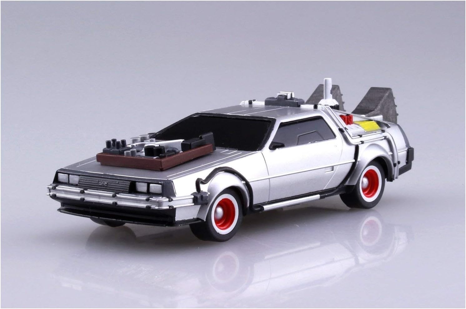 De Aoshima Bunka Kyozai Co. llega a ustedes el Delorian, la máquina del tiempo que es el clásico inmortal de "Volver al futuro" ahora está disponible como un model kit de plástico para armar al detalle. Con solo unas pocas partes, es fácil de construir. Longitud total: aprox. 4.134 in (escala 1/43). Muelle trasero incluido, por lo que puedes jugar con él incluso después del montaje. Se incluyen las piezas que aparecieron en cada título de la serie.