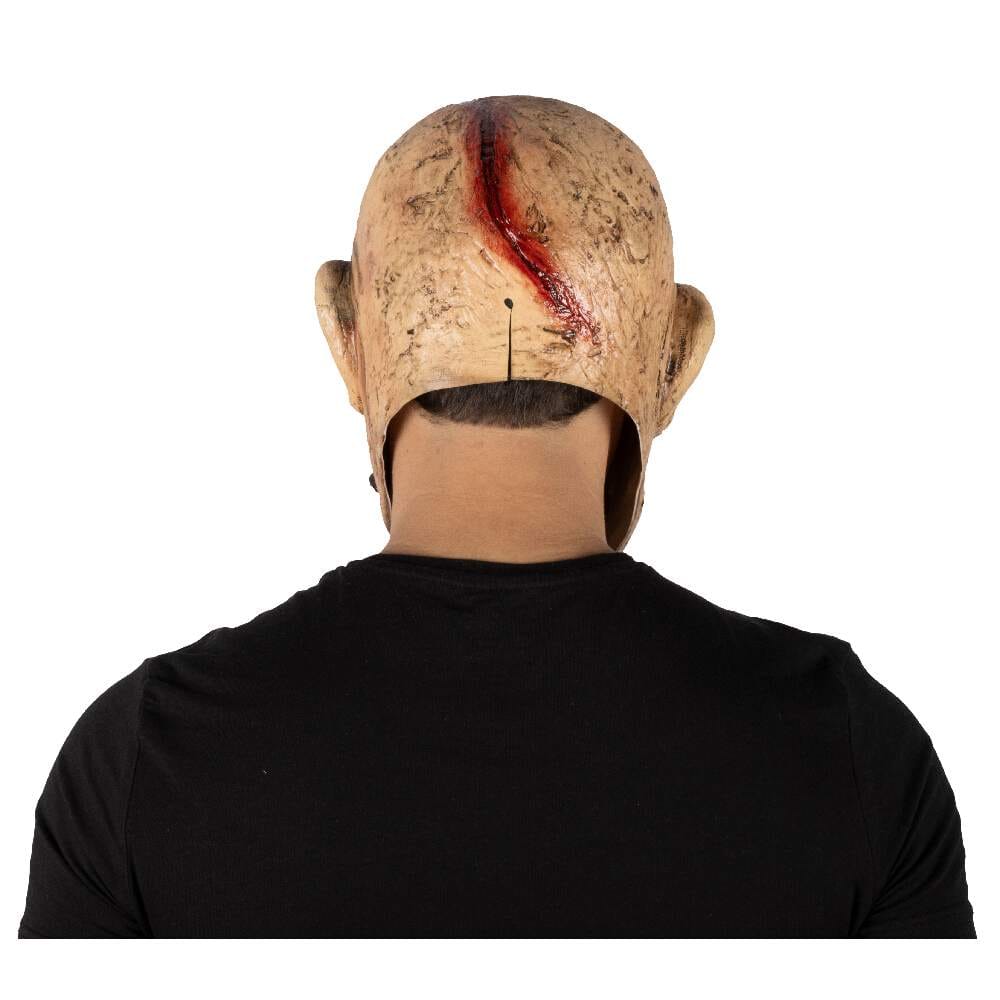 La máscara presenta un diseño perturbador y grotesco que distorsiona los rasgos clásicos del payaso. Puede incluir una nariz exageradamente grande o puntiaguda, ojos penetrantes y amenazantes, y una boca desproporcionadamente amplia con dientes afilados. Los colores pueden ser oscuros y contrastantes, como negro, rojo sangre o blanco pálido, para aumentar el impacto visual y el miedo que transmite.