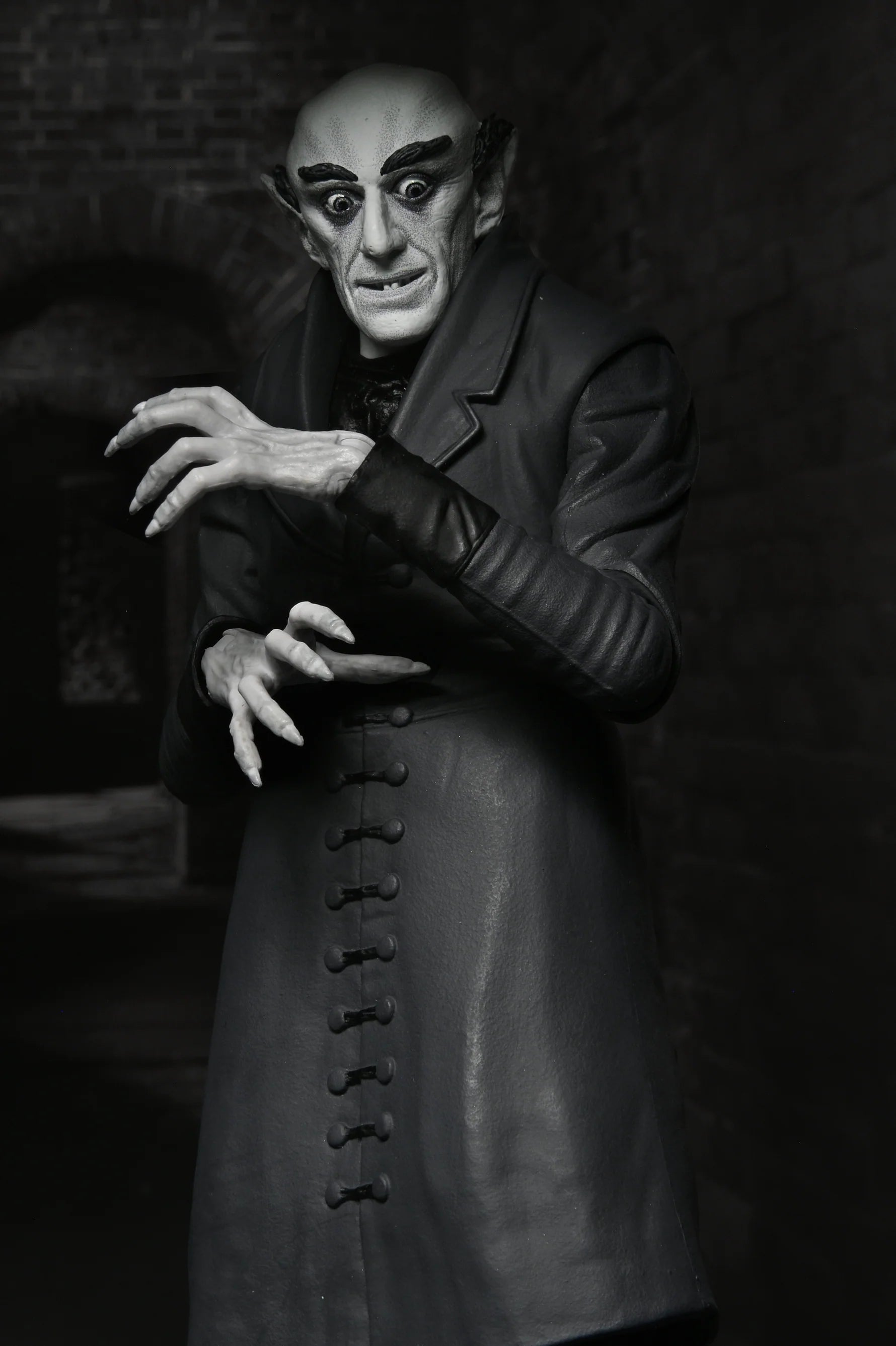 La película de vampiros Nosferatu de 1922 es considerada una obra maestra influyente de la era del cine mudo, y más de 100 años después sigue ocupando un lugar en la imaginación de los fans del terror en todo el mundo. Presentada en auténtico blanco y negro, la figura de acción Ultimate del Conde Orlok de NECA muestra al inquietante conde con un estilo sensacional, con detalles y accesorios cuidadosamente inspirados en la película.