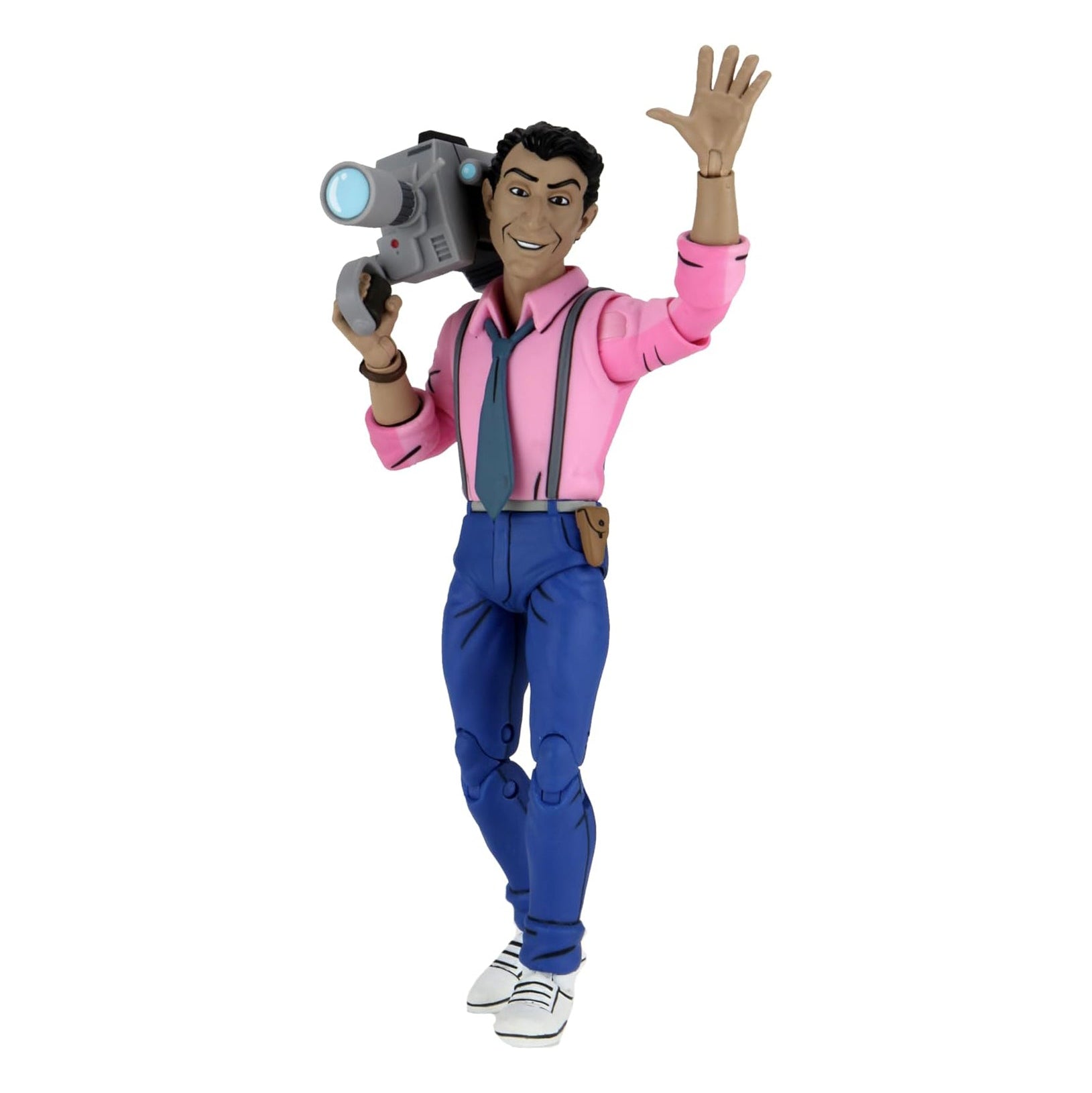 ¡La línea TMNT Cartoon ha visto una plaga de roedores! Entra el Rey Rata. Equipado con granadas de soda, un bote de mutágeno con tapa extraíble y una flauta para controlar su ejército de ratas, marcha por las alcantarillas de Nueva York para poner fin al dominio humano. También se incluye en el paquete 2 el camarógrafo de Channel 6, Vernon Fenwick. Con una altura aproximada de 7 ", Vernon viene con una cámara Channel 6 y manos y cabeza intercambiables para convertirlo en un hombre rata. Viene en una caja de ventana amplia y amigable para coleccionistas.