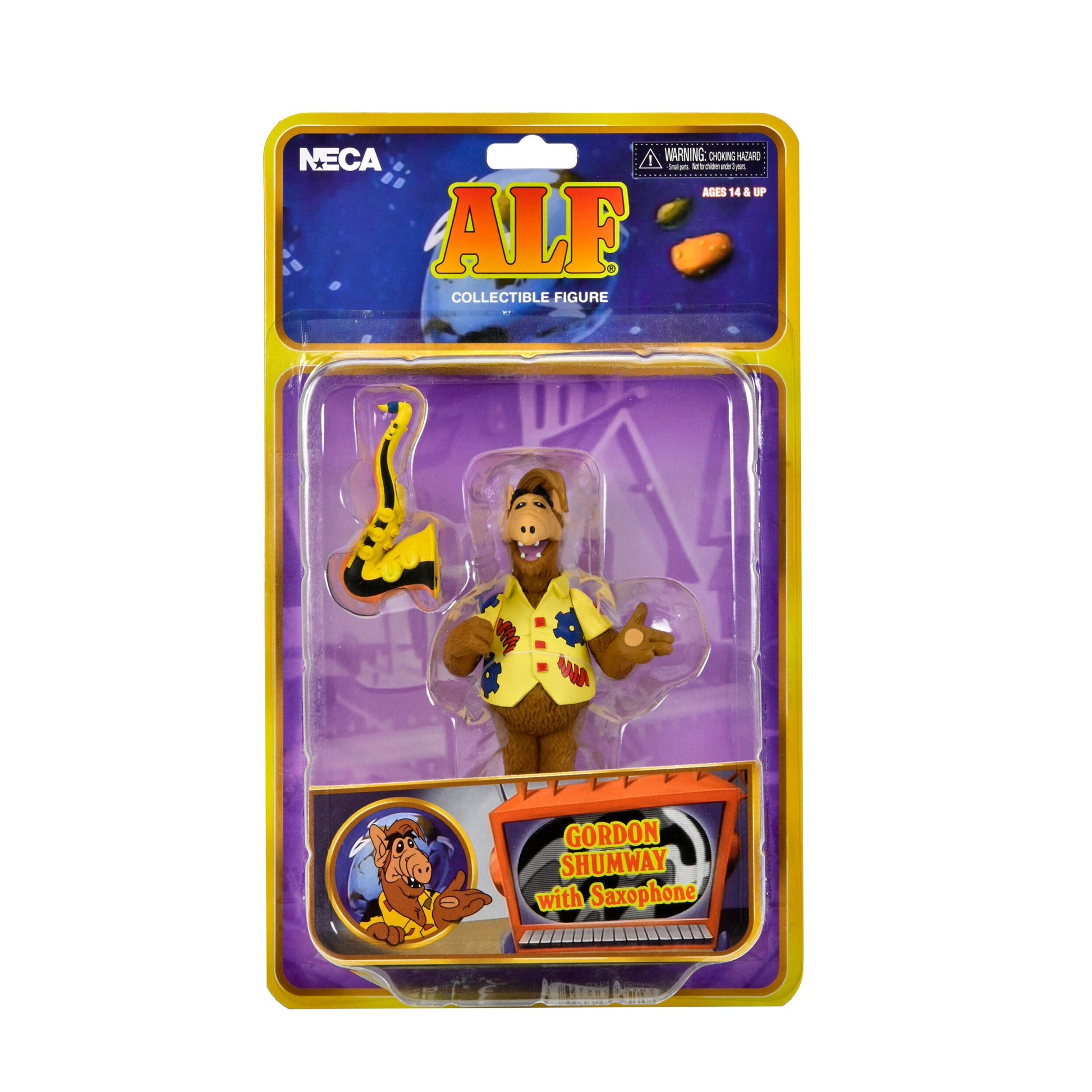 Basado en su apariencia en el dibujo animado de los años 80, ALF se une a la línea Toony Classics, la divertida versión de NECA de personajes queridos del cine y la televisión. Tu Melmaciano favorito mide aproximadamente 5" de altura y viene con un saxofón en la mano. El empaque de tarjeta blister incluye un fondo recortable adicional.